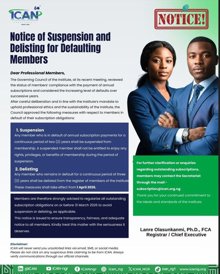 Notice of Suspension & Delisting of Defaulting Members